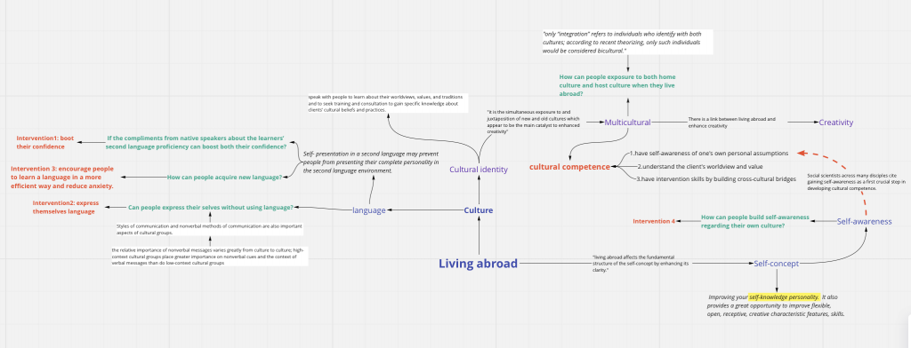 Reflecting on my project, last week I wanted to narrow down my research topic of cultural competence to share cultural experiences in London, but cultural competence is the ability to interact with people from different cultural backgrounds, not only learning British culture. So, I want to make my project focus on the cross-cultural communication skills part of cultural competence.